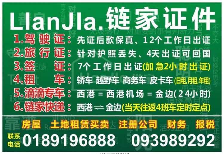 地址:金边机场对面LIanJIa.链家证件有限公司
