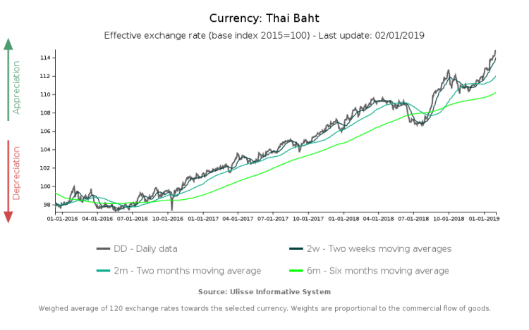 5.泰铢今年来汇率一直稳定上涨,外汇风险低