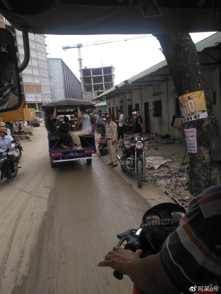 波贝这块地方刚好在柬埔寨和泰国的边境,公司在柬埔寨方,宿舍在泰国方,二地大概1.5公里左右,这边没有明显的边境线,不是有警察和老员工的讲解,我跟本发现不了这是边境,没有任何关卡,但有边境警察,早上上班时边境警察会随机抽查是否有签证,但也不是每天都会查,签证是公司帮办的,我来了几天了还没办下来,听老员工说公司是几天一次把护照送去金边中国大使馆统一办理。 今早广西的靖兄弟,被抽查到了,一起查了10来个人,我没和他坐同一辆三轮车算幸运没有被查到,公司派了翻译官去提人,1800泰币一人,如果要走这些钱都要赔付给公司。