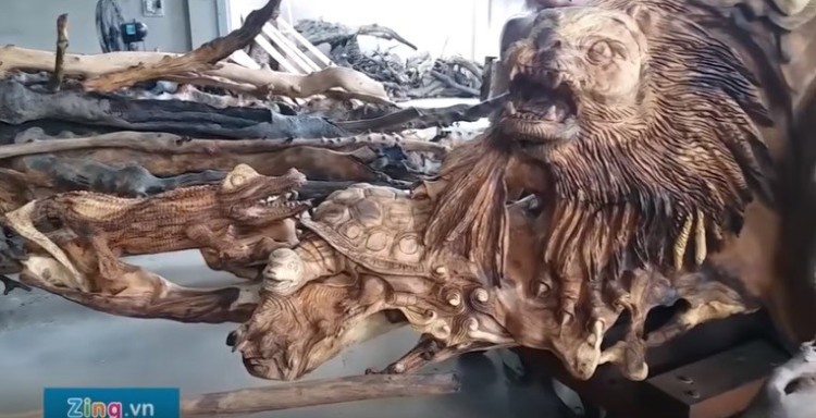 这名男子介绍,这根菩提树宽14米、高25米。当时,为了挖出树根,他雇佣了20多人。后来,他把树根拿来雕刻成犀牛、龙头等。