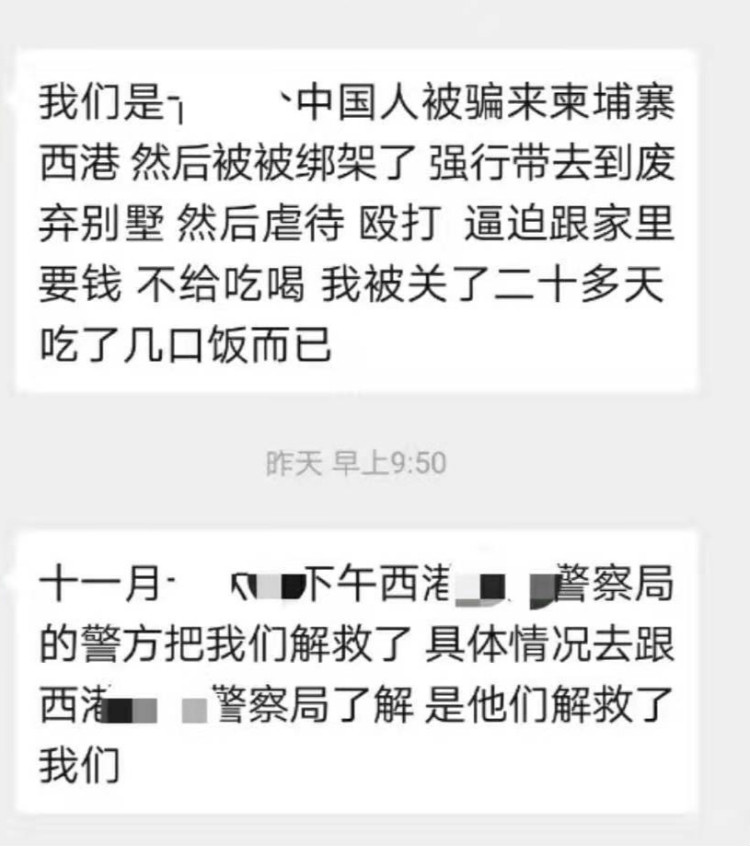 没想到我被绑架了。从澳门遇见的男子到后面发生的一切,都是绑匪的一场预谋,他们有组织有架构,分工明确,职责清晰。刚出赌场,便有一辆商务车接我。车里坐着一名司机和两名陌生男子。大佬谎称随后跟上,便消失了。车上两名男子问我是哪里人,还抢走我的手机,要求我解锁。随后他们关掉定位,车开到半路缓速时,把手机递给了路边一辆摩托车的人。接着,他们强压着我趴下去,我猛烈的挣扎反抗,结果其中一名男子拿出一把刀并说道,“再反抗就捅死你”。我被惊吓得脑子一片空白,接着被蒙上了眼罩。大概行驶了半个小时左右,他们把我带进一个废弃的别墅里。眼罩被取下那一瞬间,我震惊不已,里面竟然囚禁着10名来自中国其他省份的受害者,他们面黄肌瘦、遍体鳞伤...... 绑匪反人性的酷刑,把人逼到精神崩溃
