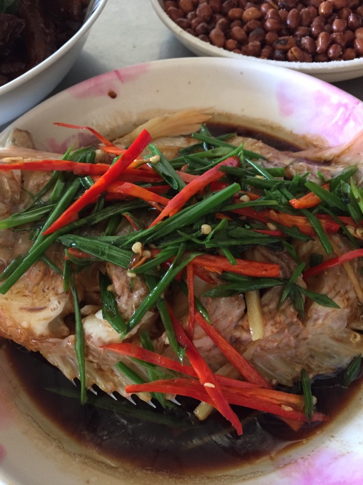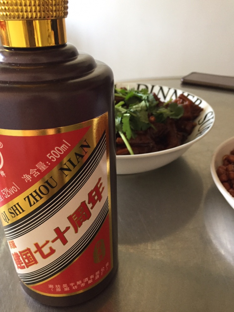 他自己辛苦做了四个菜,还拿出白酒招待。无奈我是必须暂时戒酒,叫老乡陪他喝了一点。