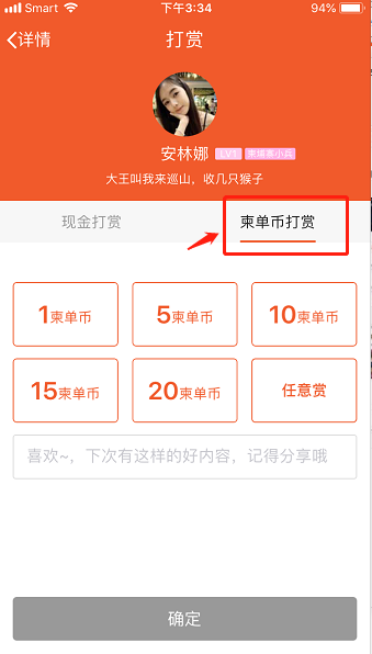 选择“柬单币打赏”