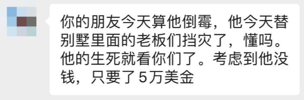 被绑之后,老张失去了对他的手机的控制权。绑匪拿到老张的手机,通过老张本人的微信,开始与外界联系。而绑匪们最初开始联系的对象,就是那晚和老张一起参加聚会的朋友们。