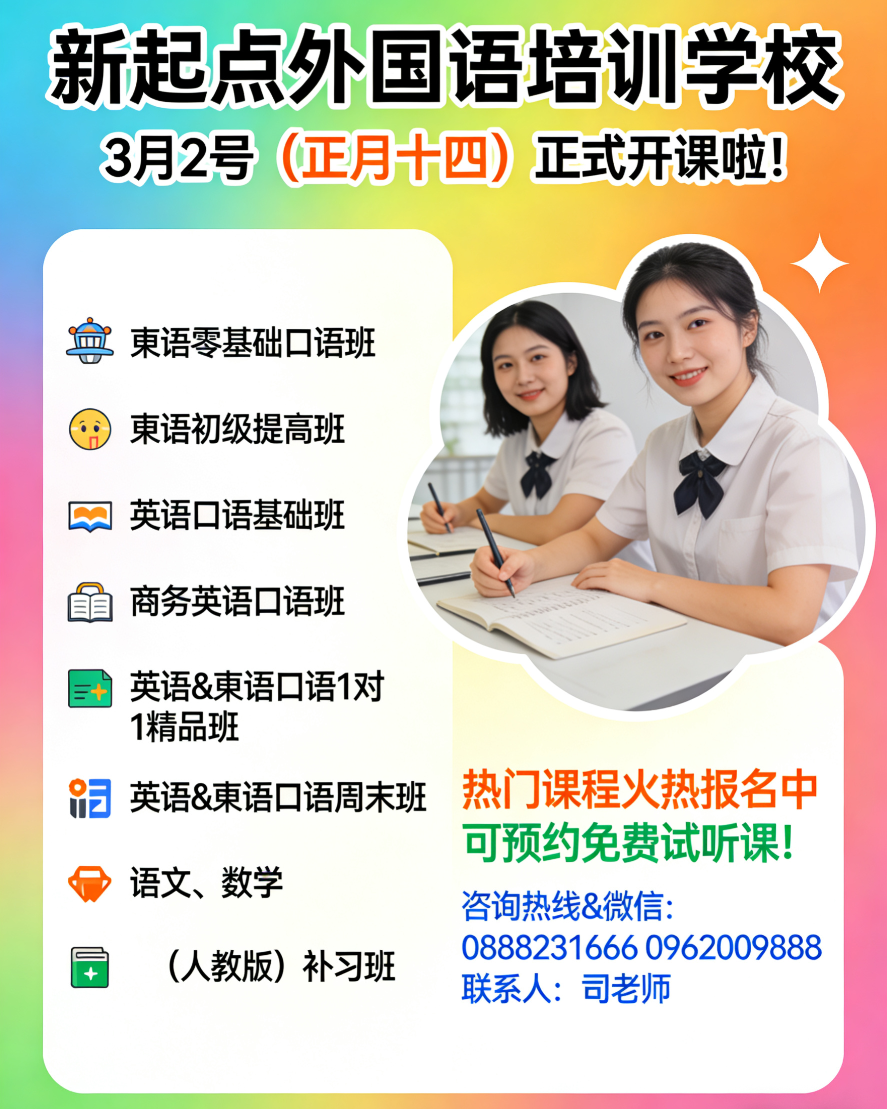 新起点外国语培训学校自2015年开办以来,一直是中国🇨🇳人学习英语和柬语的首选!我们培训学校已经走近11个年头,感谢大家一如既往的支持和信任!我们会用优质的教学回馈大家!