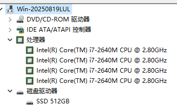 处理器 英特尔 酷睿 i7-2640M @ 2.80GHz 四核
