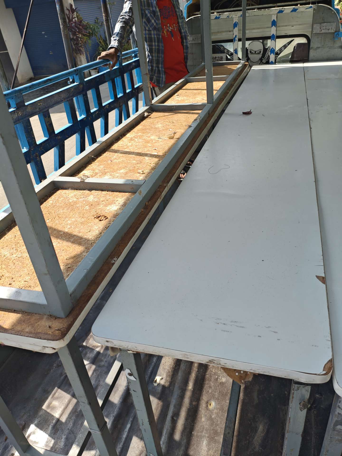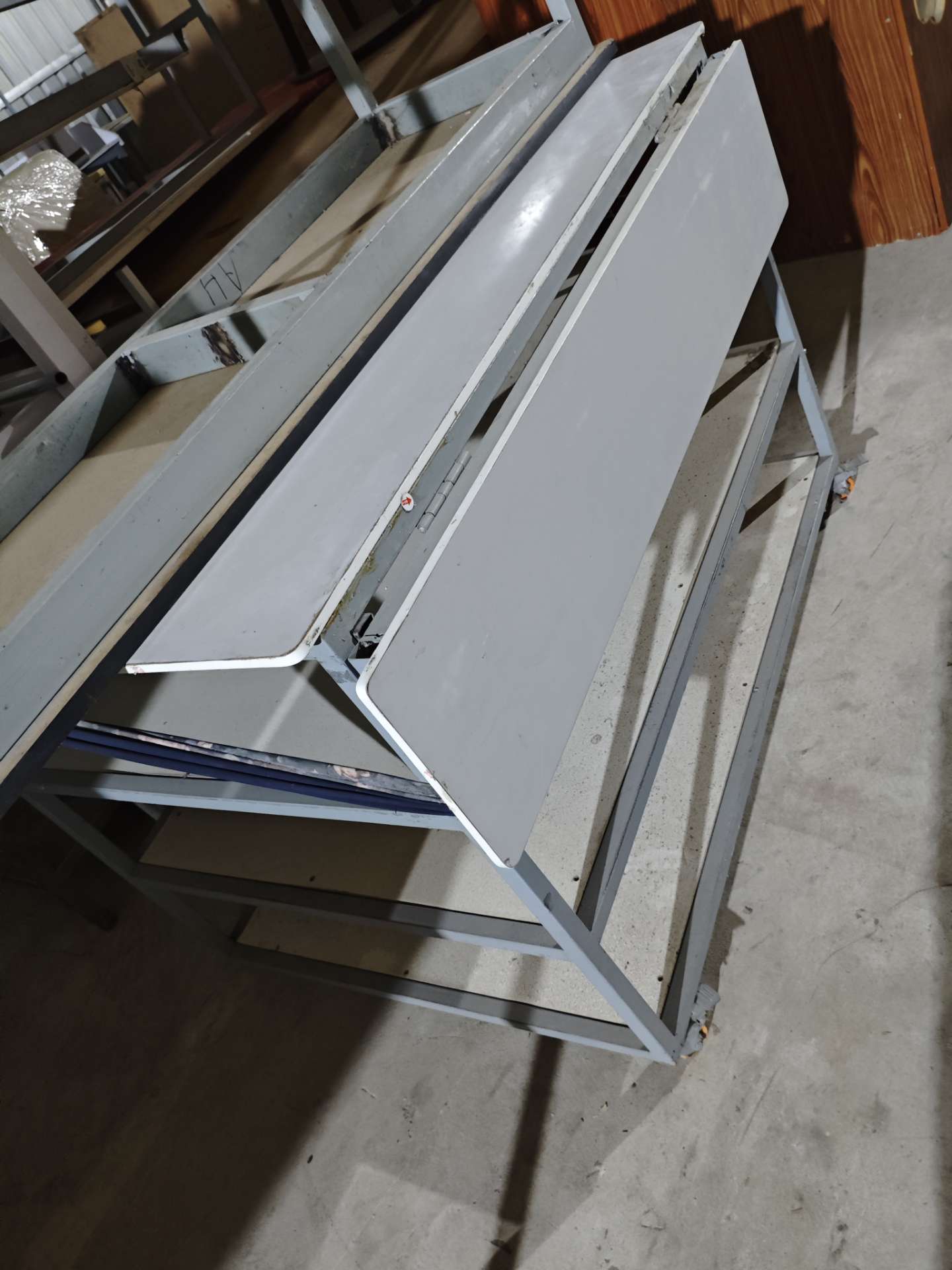 制衣厂缩减产能,没地方放了,现处理五张流水台3.2米长Ⅹ0.4米宽Ⅹ0.8米高共5张丶双面五层放裁片架一个丶四层折叠查货台一张。除流水台不带轮,其他均带轮子,移动方便丶结实耐用,诚心要可议价。微信ZhqunH8818