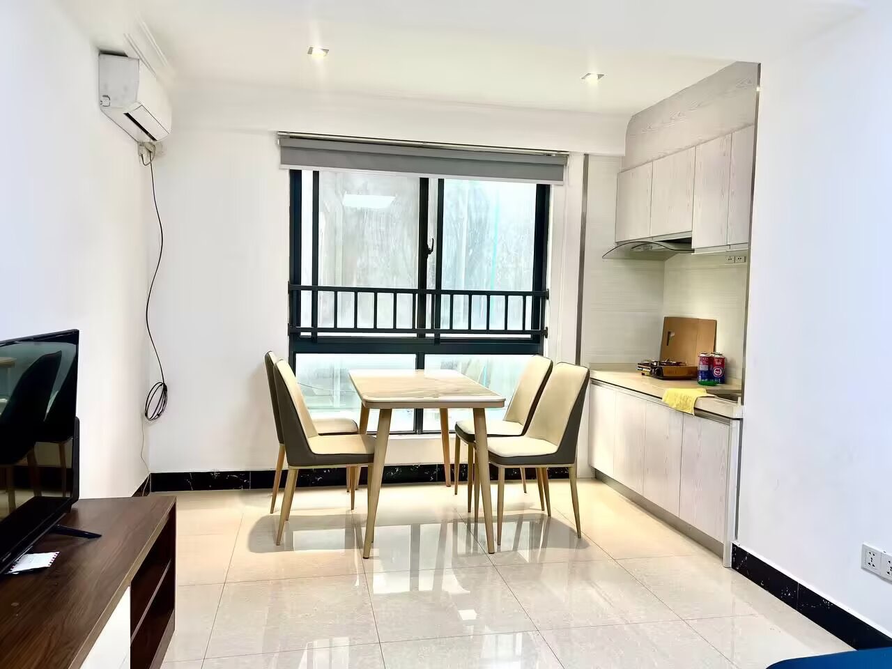 房东直租金边市中心,白金湾公寓,一室一厅,拎包入住,家具齐全,还配备游泳池,健身房,免费停车场!