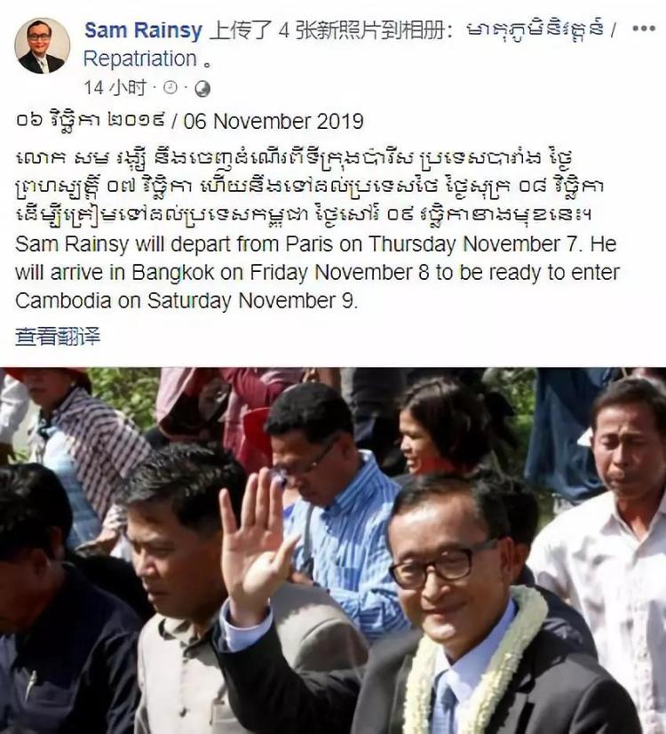 11月6日,沈良西在其官方脸书上发布消息,称他将于明天下午从法国出发抵达泰国,并将按时返回柬埔寨