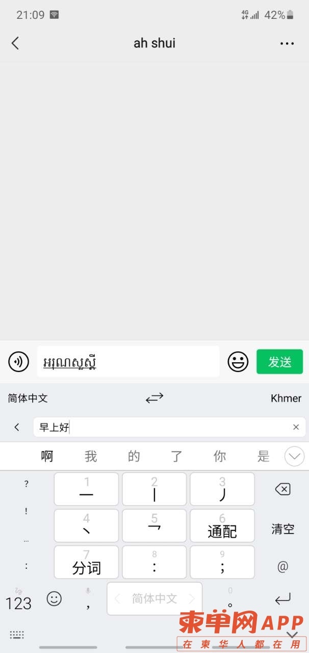 当然很多同胞的手机是从国内带过来的,就不行了。因为很多手机不支持高棉语发音,所以直接语音沟通就不可以了,别急,我们还可以用文字嘛!