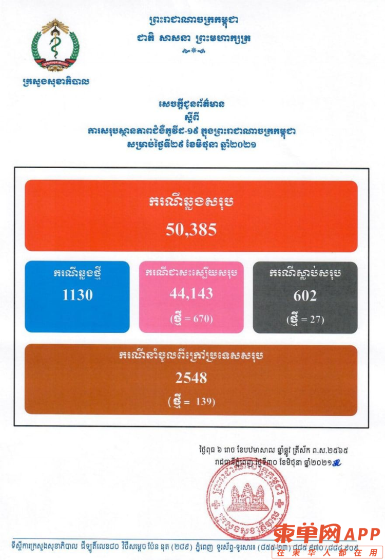 柬埔寨新增44例确诊,43例柬埔寨籍,无新增中国病例