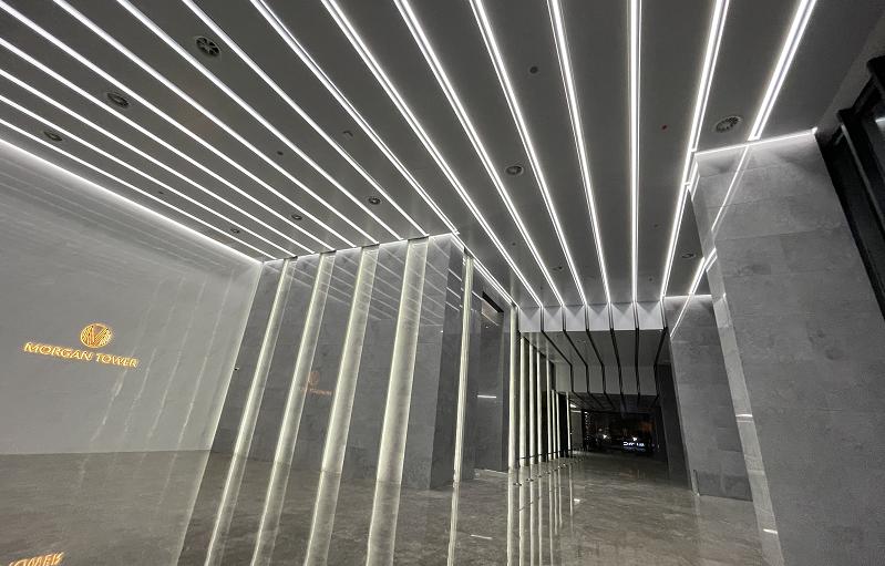 摩根大厦奢华艺术大堂,挑高约12米,标准层约2140㎡,挑高3.9米,24小时全中央空调新风系统,15部国际高速电梯35秒直达楼顶。