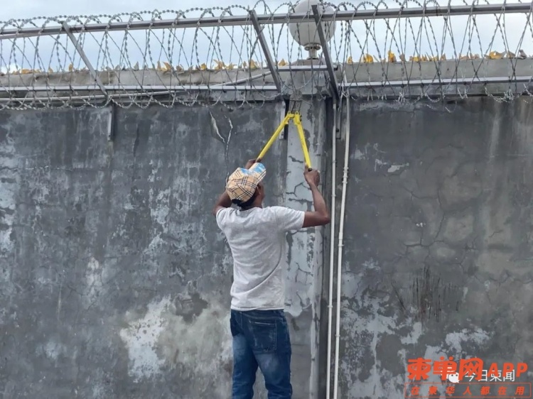 工人剪掉围墙上的铁丝网据知情人士称,西港政府8月24日开会内部决定要求所有园区打开大门、剪掉围墙上的铁丝网、拆掉窗户上的围栏,甚至要求有的园区彻底拆除围墙。