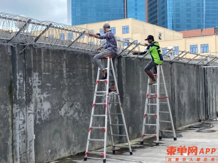 在凯博2园区,记者还见到了3名柬籍工人正在用工具剪掉围墙上的铁丝网。
