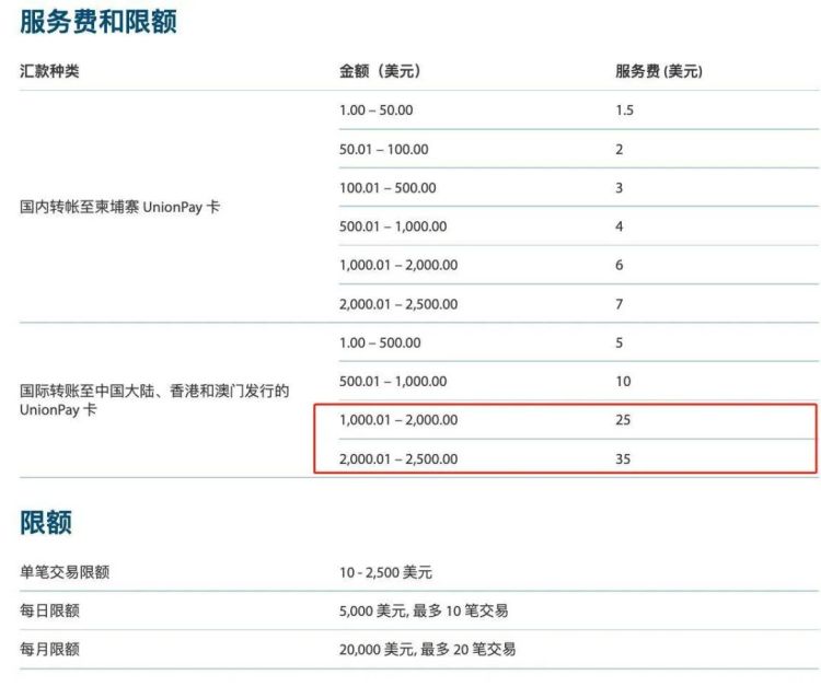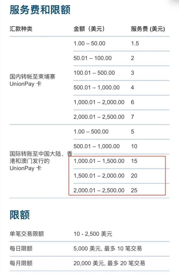 ABA银行对从柬埔寨跨境汇款至中国新手续费标准如下表: ![]()