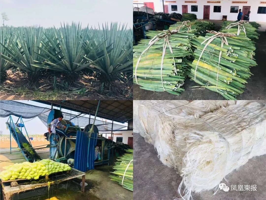 (图为炯哥剑麻农场的剑麻农场及加工成的剑麻纤维)