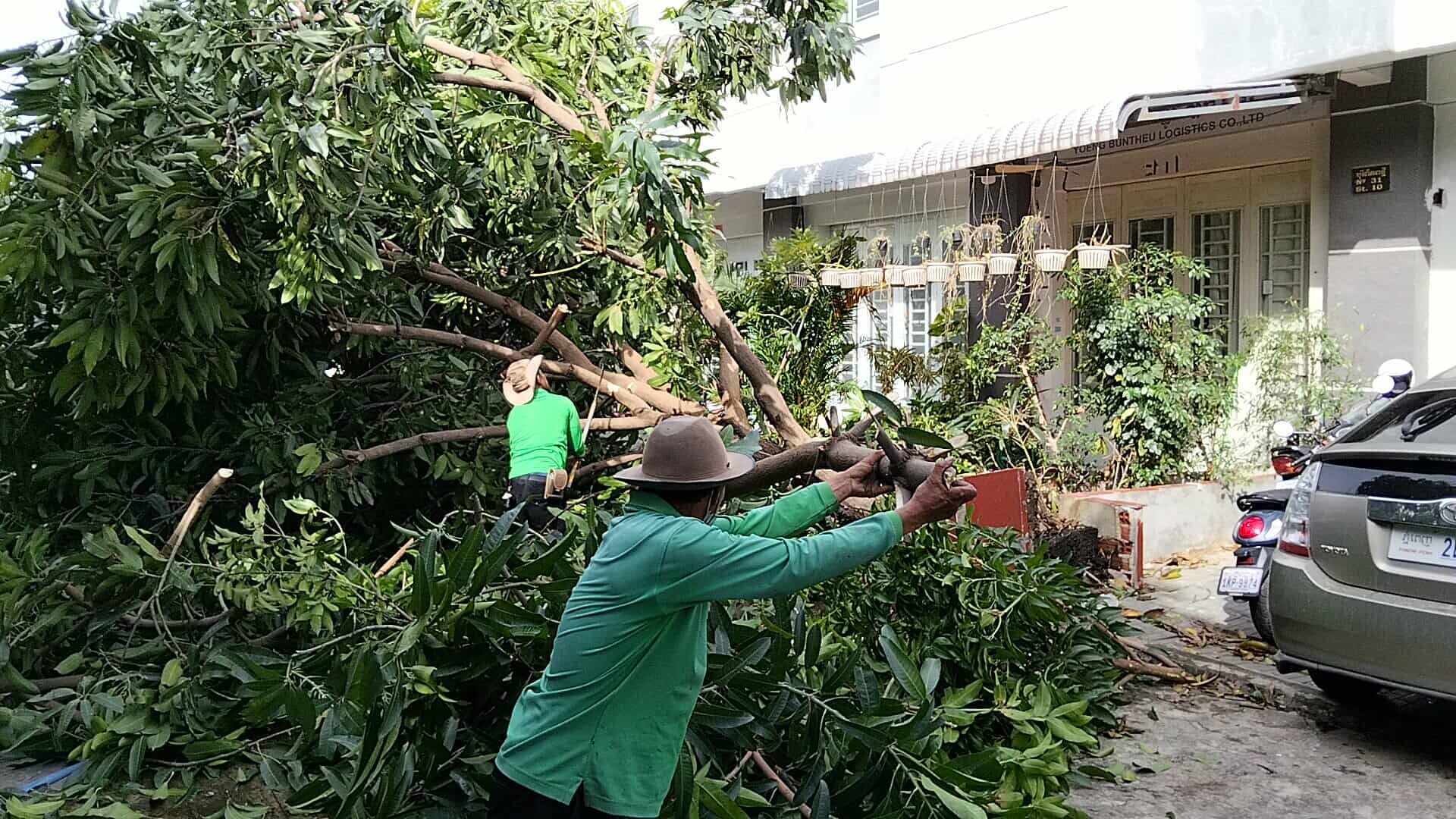 金边遭狂风暴雨袭击,多棵大树被连根拔起
