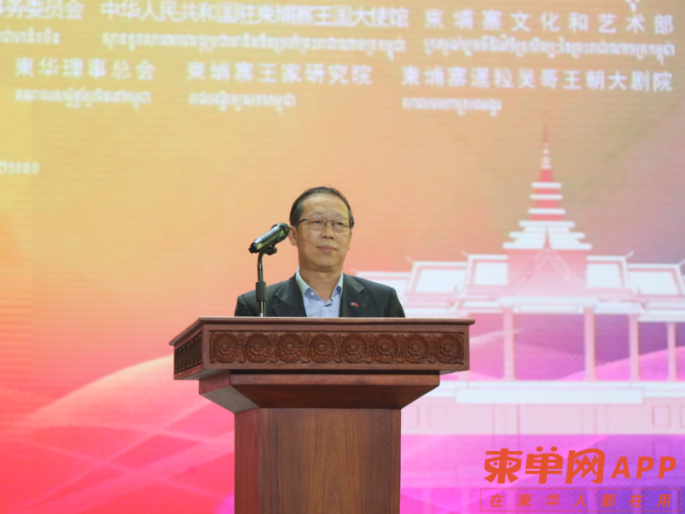 他说,在中柬两国建交65周年之际,为进一步落实两国领导人关于深化中柬友谊、构建新时代中柬命运共同体的重要共识,受中华人民共和国国家民族事务委员会委派,西北民族大学组织了“‘多彩中华’中国少数民族艺术代表团”来柬埔寨开展文艺演出和友好交流活动,我们满怀友谊、载歌载舞而来,希望为两国文明交流互鉴、人民民心相通贡献一份力量。