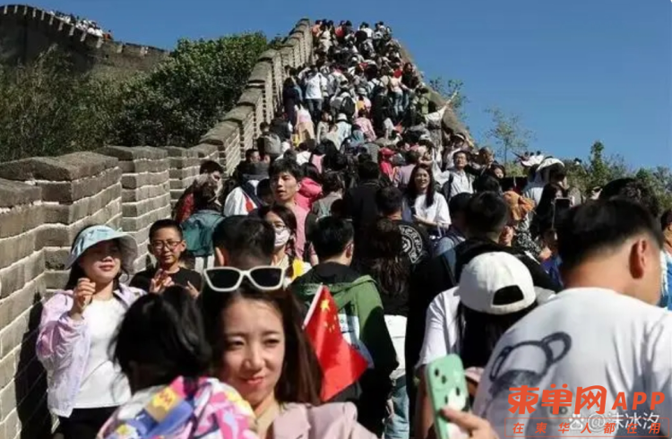 10月1日国庆节假期,一名女子在游览八达岭长城时,在人山人海的游客群中自拍 卖座电影成“劝退指南”