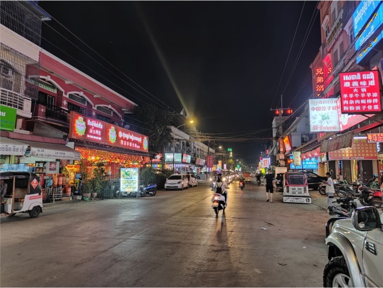 对于很多第一次踏上柬埔寨土地的中国人来说,从走出金边国际机场的那一刻起,可能会产生一种“还没出国”的错觉:机场门口的俄罗斯大道路北由东往西方向,到处都是写着中文字的各种商家招牌和路边广告,顺着这些广告再向西走大约1.3公里,就到了中国街。