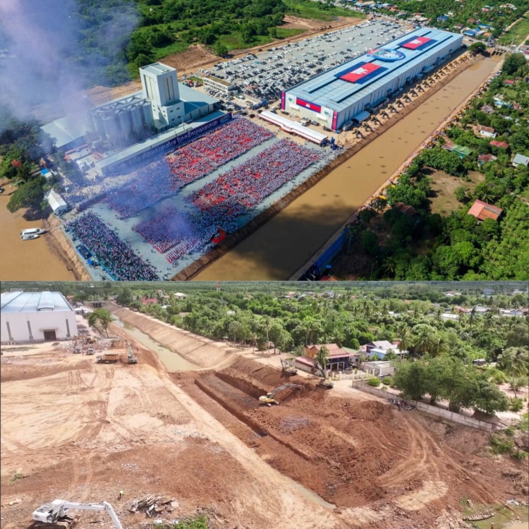 记者:人鱼编辑:Miles8月5日凌晨,时间刚过3点,家住在干拉省根斯威县塔卡耶夫村(Preaek Ta Kaev)的萨卡很反常地起了个大早,在用10分钟的时间整理穿戴完自己的宪兵制服后,就立刻赶去和同事们维持门口国道的交通秩序,因为再过几个小时,这里将要发生一件足以让所有柬埔寨人发自内心深感自豪的大事。萨卡居住的村庄就在柬埔寨的1号国道旁边,整个村庄沿着湄公河的流向形成了一条弧线。之所以萨卡在8月5日起了个大早,是因为在8月4日这天接到了一条来自上级的命令:8月5日,德崇扶南运河将在这里举办开工大典,届时这条柬埔寨从首相到百姓齐力支持、被越南和美国联手反对的运河,将正式开工建设。德崇扶南运河开工大典前后对比