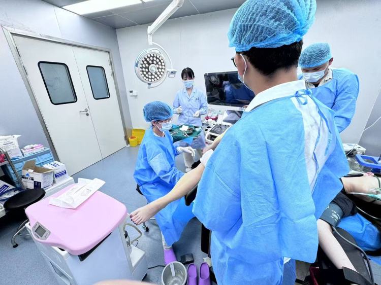不仅如此,陈院重点打造妇科介入手术和男科生殖系统,让云图国际医院为在柬埔寨中国同胞保驾护航。虽然陈院本人并非医生出身,但她在国内医疗行业深耕十余年,熟悉医院运营的痛点。据她介绍,她曾从事过大型医药公司的管理工作,与各大医院打过多年交道,这让她对如何改善医院管理胸有成竹。借助自己的人脉和经验,陈院为金边云图医院建立起一支更专业的新团队。针对生殖医学这一专科的特点,陈院还提出了中西医结合的特色路线,希望以差异化服务赢得患者信赖。她特地邀请了在柬埔寨中医领域颇有造诣的赵前进中医医师加盟,在医院开设中医门诊,将针灸、中药调理等传统疗法融入试管婴儿等西医生殖技术。“辅助生殖需要中西医配合,先把身体调理好,再配合西医手段,成功率会更高。”她在内部会议上这样解释引入中医的用意。这种中西并举的模式不仅满足了一些华人患者对中医疗法的偏好,也为医院树立与众不同的专业形象增添了亮点——目前她们已经取得不错的结果。与此同时,陈院着手建立更透明的管理制度。她要求医院公开各项收费标准,杜绝随意抬高价格;设立患者投诉直通院长办公室的渠道,及时反馈和解决问题;定期组织医护培训,强调医疗规范和急救反应速度,努力让每一位员工绷紧质量这根弦。(云图国际医院专业医疗团队在手术室进行手术)