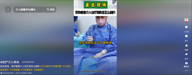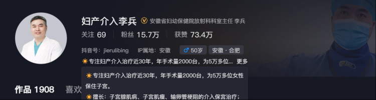 (在抖音平台上,李兵医生拥有超15万粉丝,并且科普妇产介入手术)