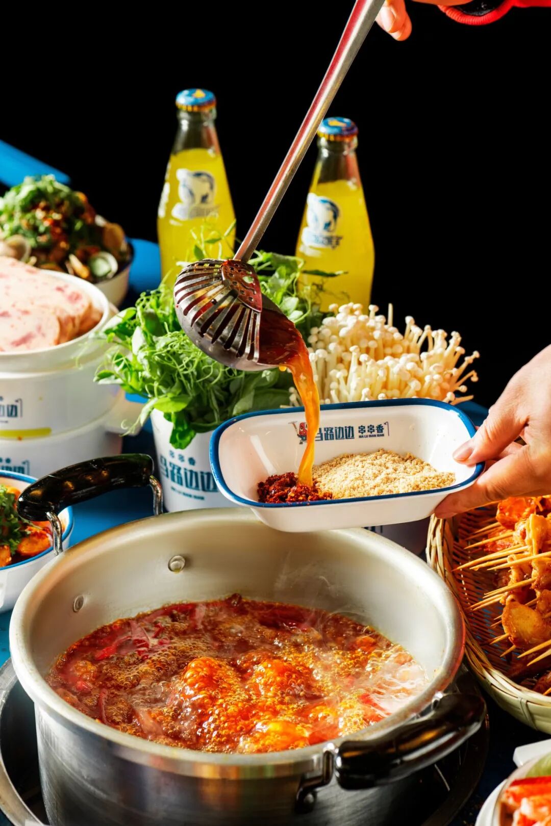 · 100+种菜品月月上新——从经典小郡肝到东南亚风情串,中西合璧,辣得国际化!