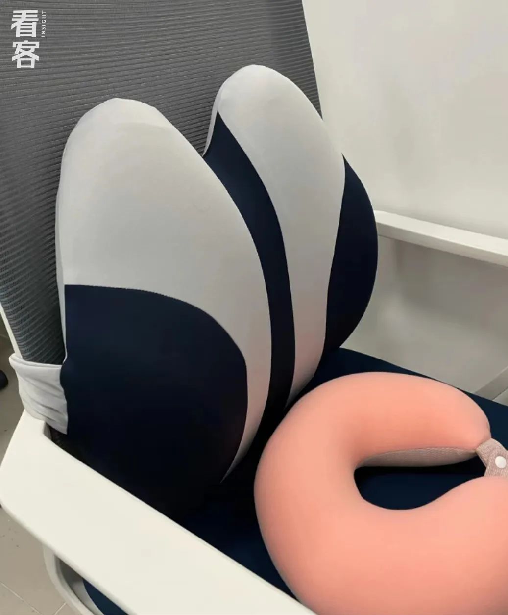 看到他的生活方式后,我也给自己立了一个Flag,只要在35岁之前攒得100万元,就选择FIRE,做个自由的人。为了这个目标,我果断从“温吞”的外企辞职,跳槽到一家税前20万的国企工作。这份工作爸妈觉得很有面子,我的存款数也逐渐变多,可我的身体却为此付出了严重代价。那是一家以“卷”而知名的国企,我整个人拼到无暇顾及爱人与生活,但始终卷不过身边比自己更拼的“大牛”,停下来时会觉得有些挫败。在这种高压状态下工作两年,我像被“抽干”了养分的植物,整日脸色蜡黄,脸上也出现了很多痘痘,而且脖子疼得厉害,甚至有几次差点在厕所里向前倾倒。抽空体检我才得知,自己的脊椎失去了生理性弯曲,变成了一根垂直的棍子。医生警示我需要尽快做核磁共振,开展全面理疗,但想起自己的绩效薪资完全被上级主管拿捏在手里,我就迟迟不敢因“身体故障”请假。就这样,病情一直被拖到去年8月,我的情绪也越来越不稳定,每天上班路上内心会发出一个声音:“你不属于这里”。直到有一次,我在同事身上看到一件特别令人愤懑的事情,彻底坚定了辞职。工位上面有个靠枕能缓解我的身体疼痛。