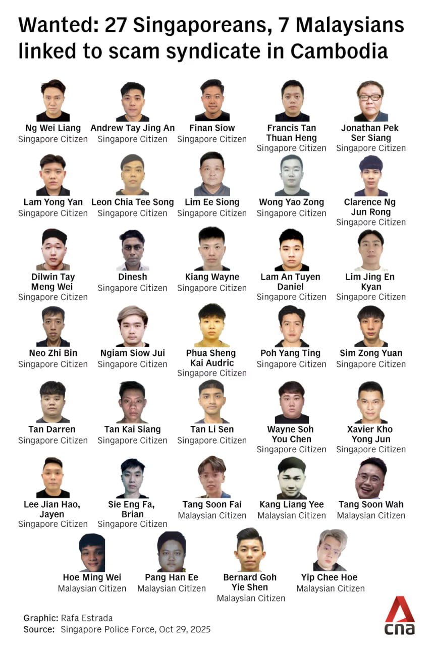 【柬单网综合报道】据《高棉时报》消息,新加坡警方(SPF)于10月29日发布公告称,共有27名新加坡人和7名马来西亚人因涉嫌参与一个以柬埔寨为基地的跨国诈骗集团而被通缉。该团伙主要通过冒充新加坡政府官员实施诈骗,涉案金额高达4,100万新元(约合3,170万美元)。