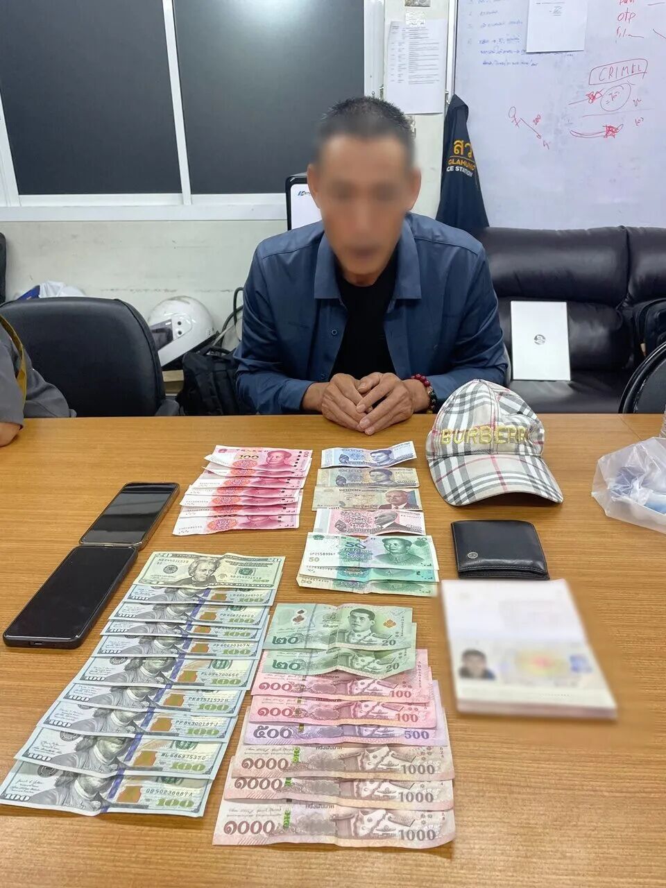银行账户资料:5 本存折及 5 张 ATM 卡(其中泰国开泰银行 2 本存折 + 2 张卡、泰国曼谷银行 2 本存折 + 2 张卡、泰国大城银行 1 本存折 + 1 张卡); 通讯设备:5 部智能手机。