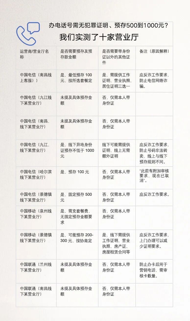 “想在南昌办张电话卡,营业厅说要无犯罪记录证明,这合理吗?”近日,有消费者反映称在线下办理电话卡时,被电信营业网点要求提供额外证明材料,有的还需预存千元不等的话费。