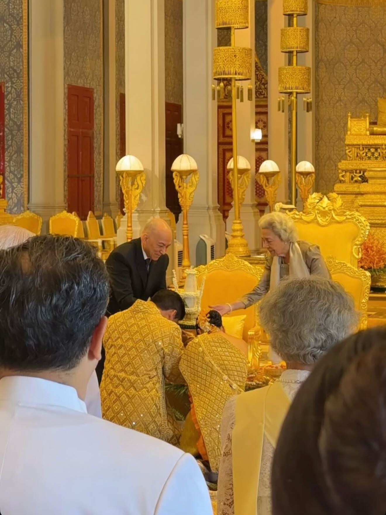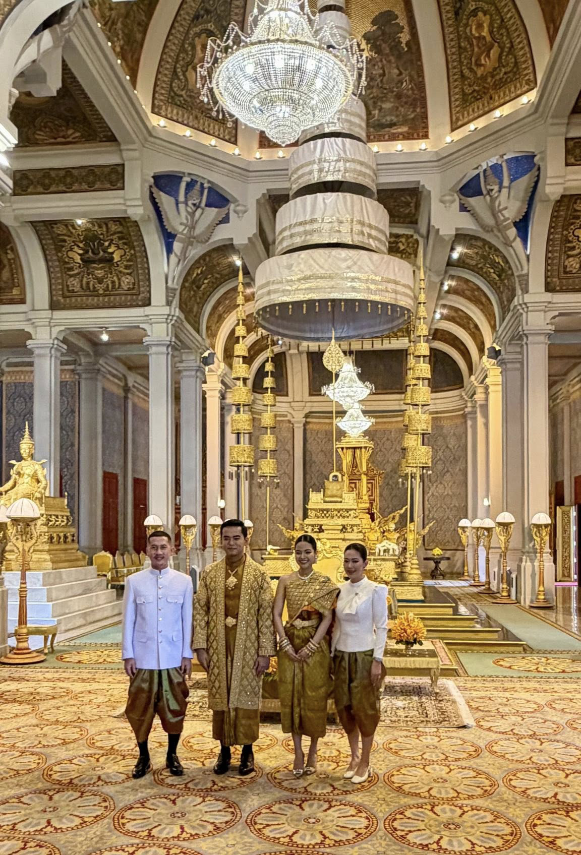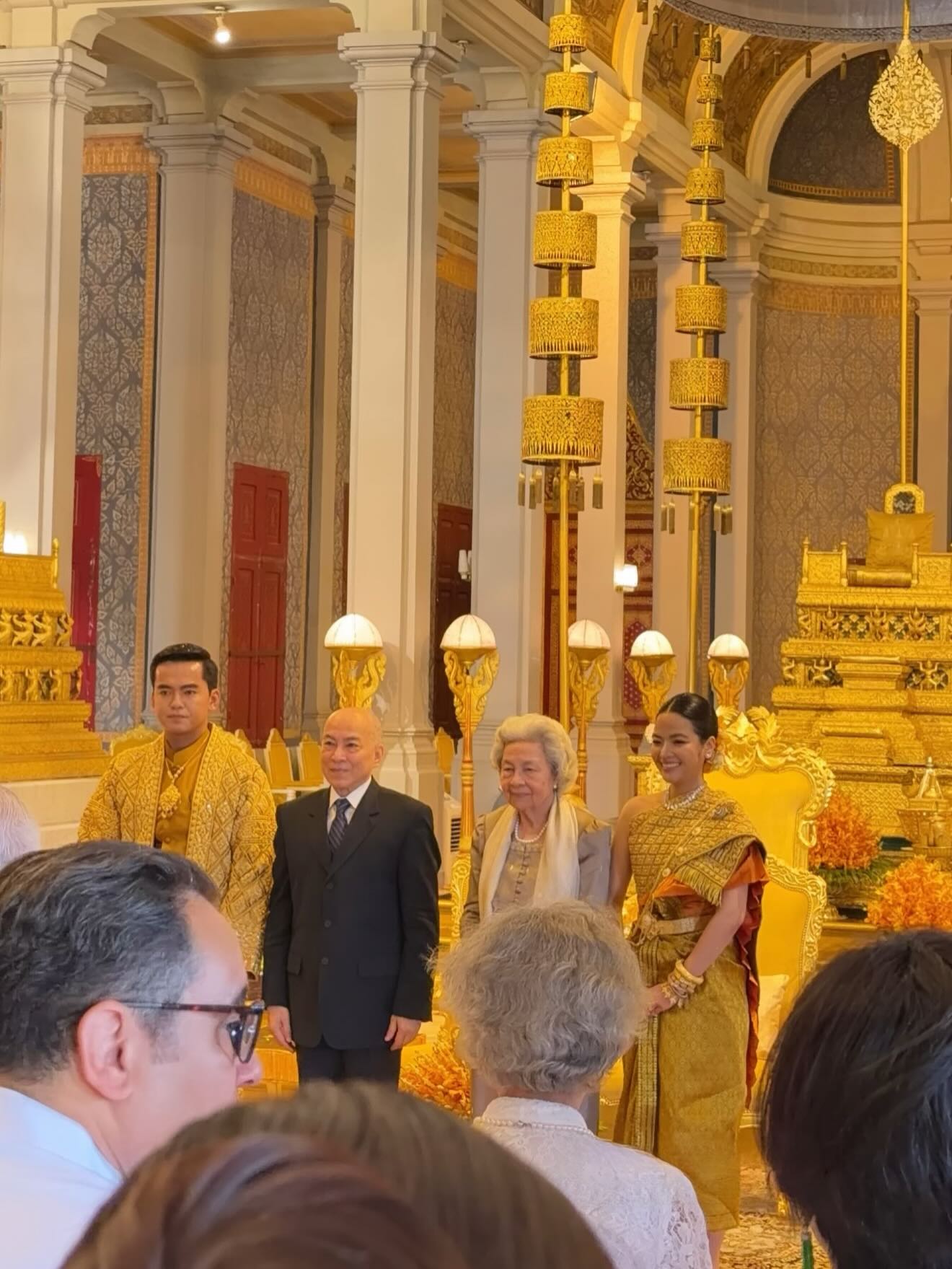 婚礼典礼在王宫“四面吉祥殿”依循传统王室礼制进行,由西哈莫尼国王与莫尼列国母亲临主礼。整个仪式庄严肃穆、隆重典雅,展现王室传统的延续与礼仪文化的深厚底蕴,也象征着王室与社会知名家族之间的新一轮联姻。
