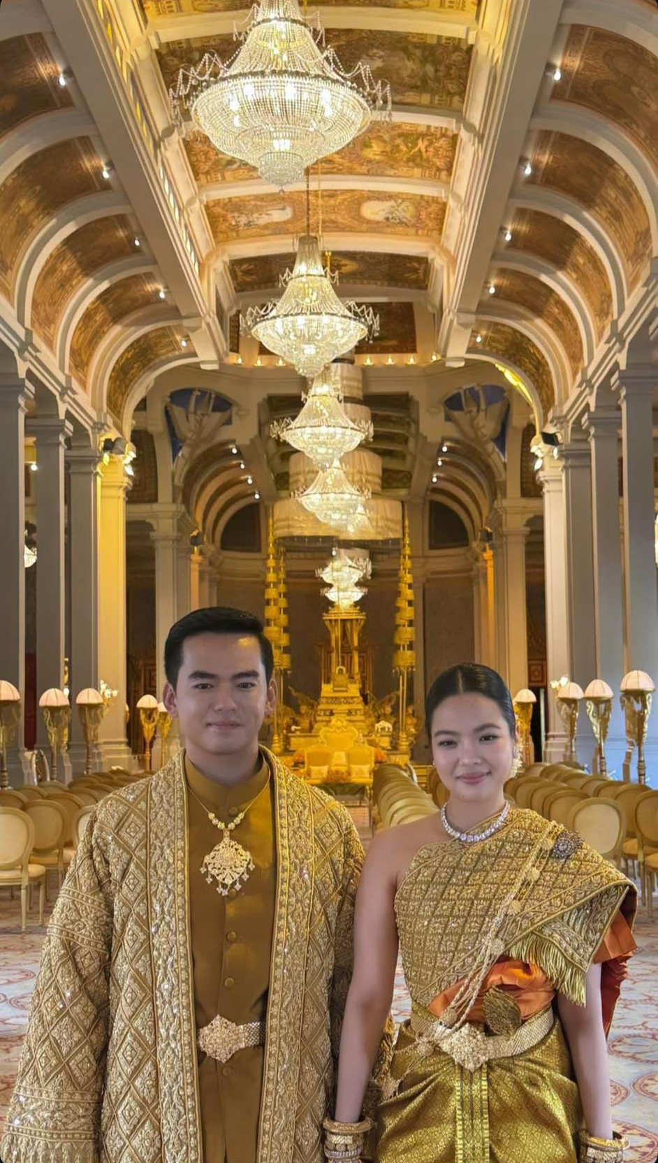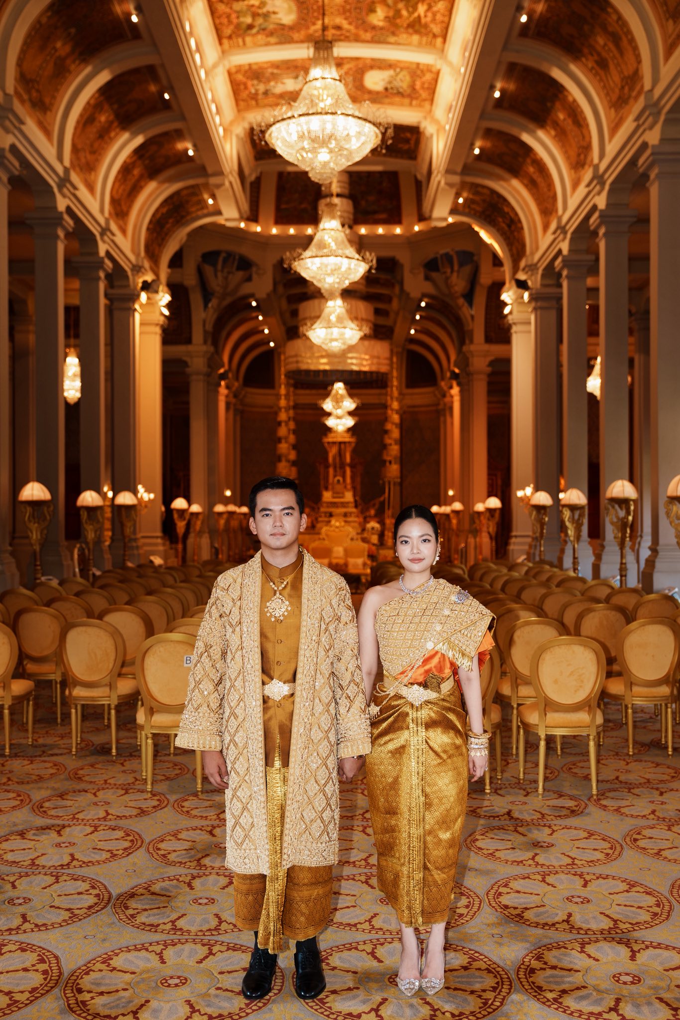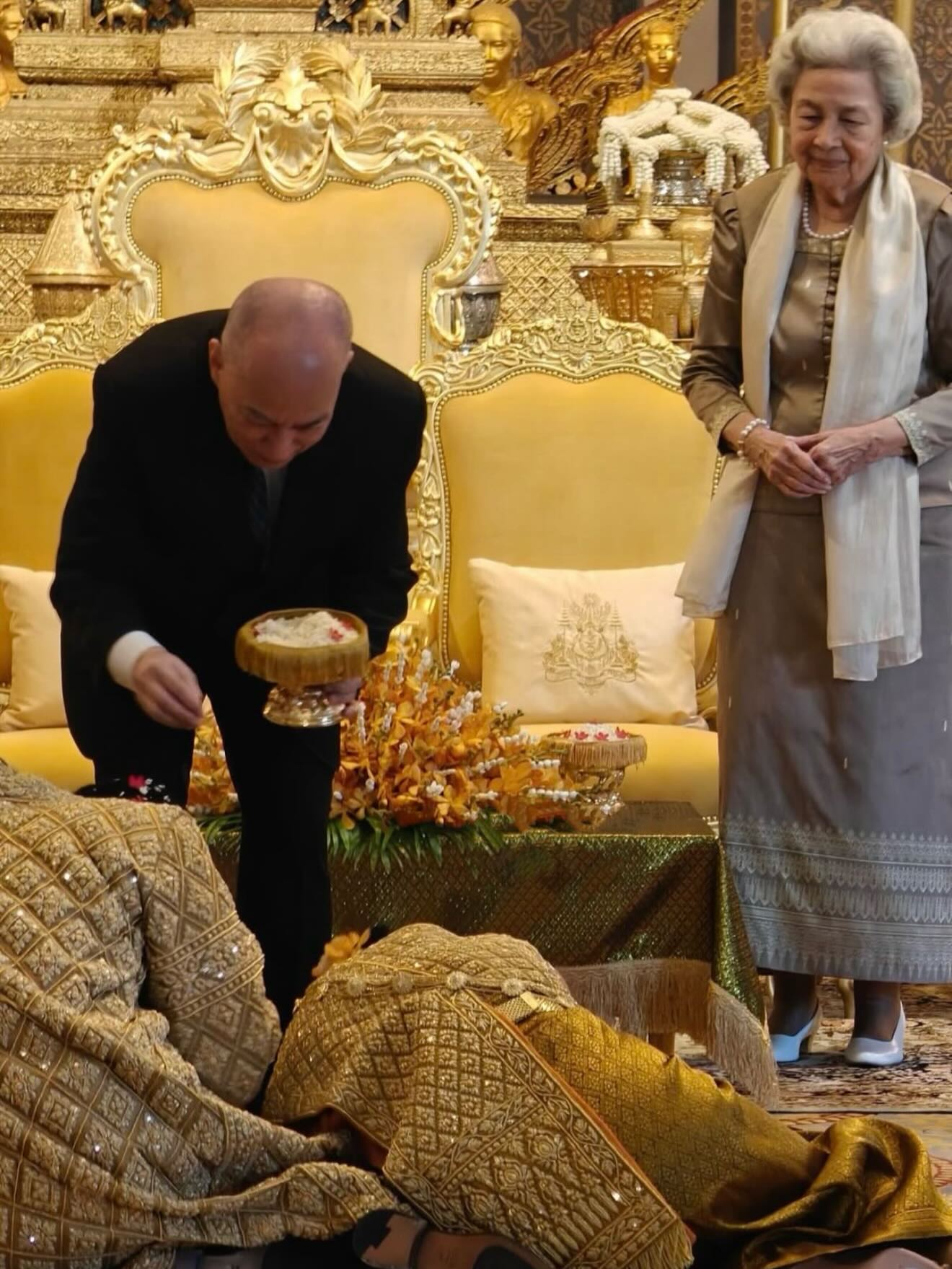 婚礼典礼在王宫“四面吉祥殿”依循传统王室礼制进行,由西哈莫尼国王与莫尼列国母亲临主礼。整个仪式庄严肃穆、隆重典雅,展现王室传统的延续与礼仪文化的深厚底蕴,也象征着王室与社会知名家族之间的新一轮联姻。