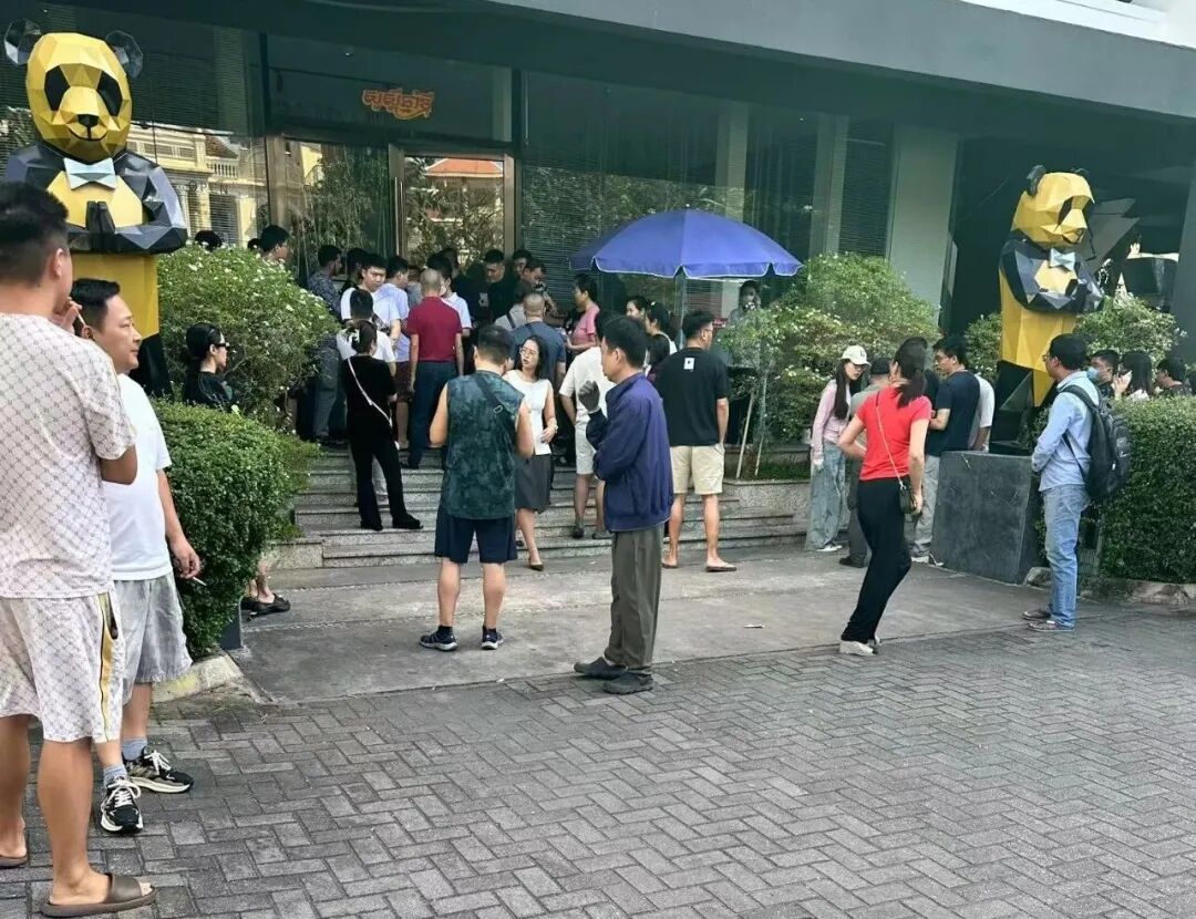 11月27日上午,汇旺(HUIONE)金边总部出现大规模排队现象。记者在现场看到,因网点临时实施“每日限取2000美元”措施,大批用户在门外等候办理取号,人数接近百人,办公大厅内同样人满为患,队伍已排至室外。