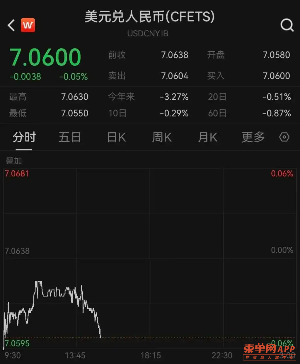 美联储如期降息,在岸、离岸人民币对美元汇率升破7.06