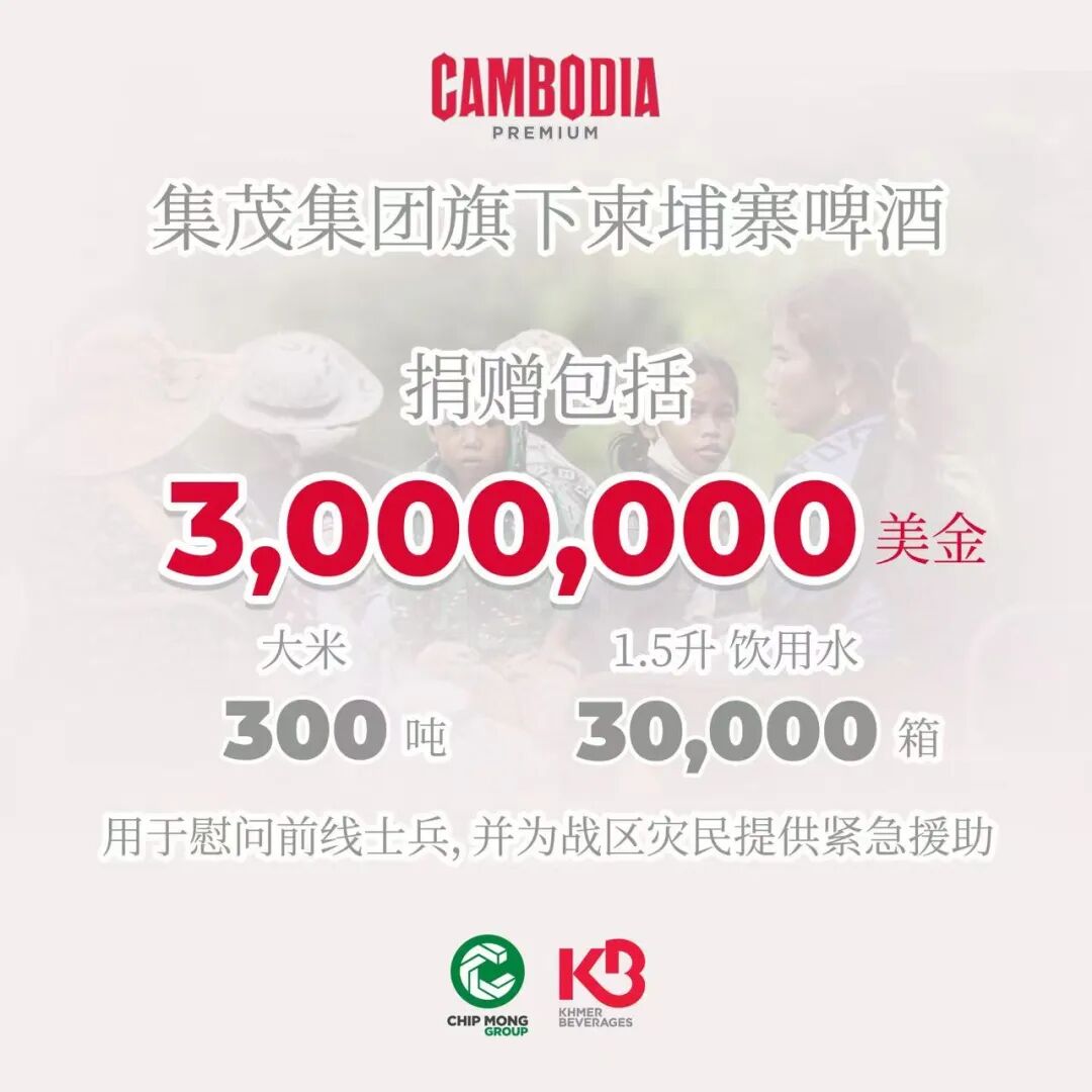 柬埔寨啤酒捐赠300万美元及物资,全力支援前线与难民