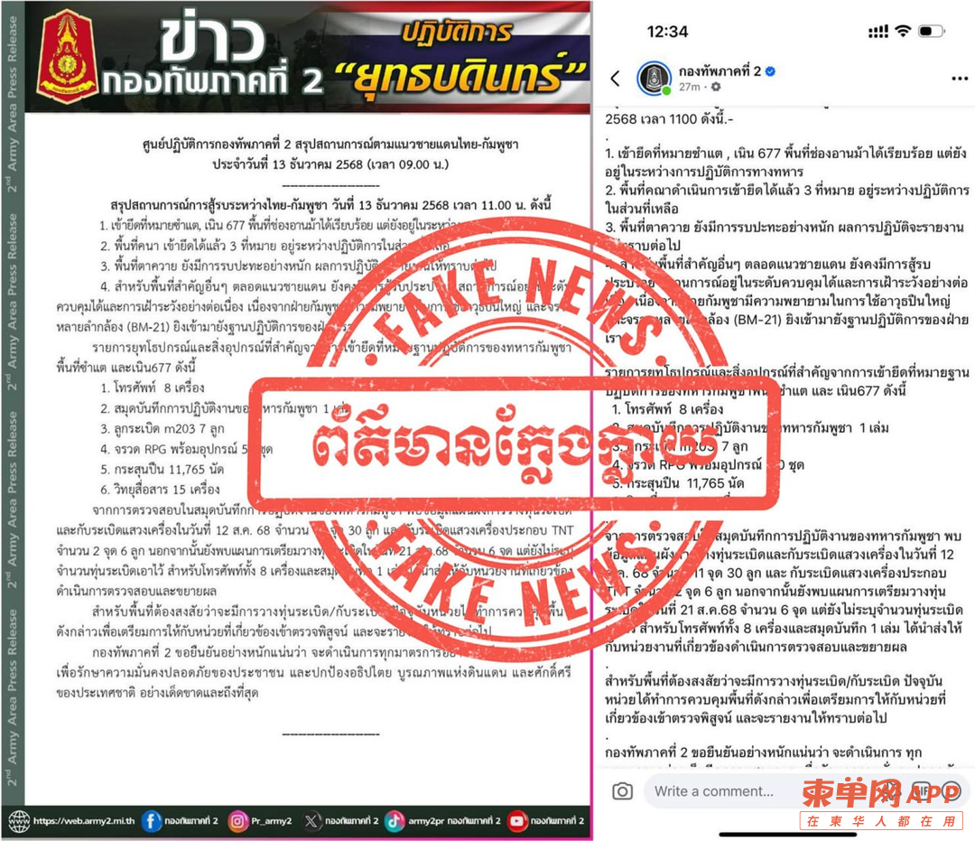 【柬单网综合报道】柬埔寨国防部13日发表声明,严正驳斥并否认泰国第二军区社交媒体账号有关柬埔寨计划在边境地区布设地雷的指控,强调相关说法属虚假信息,严重背离事实。