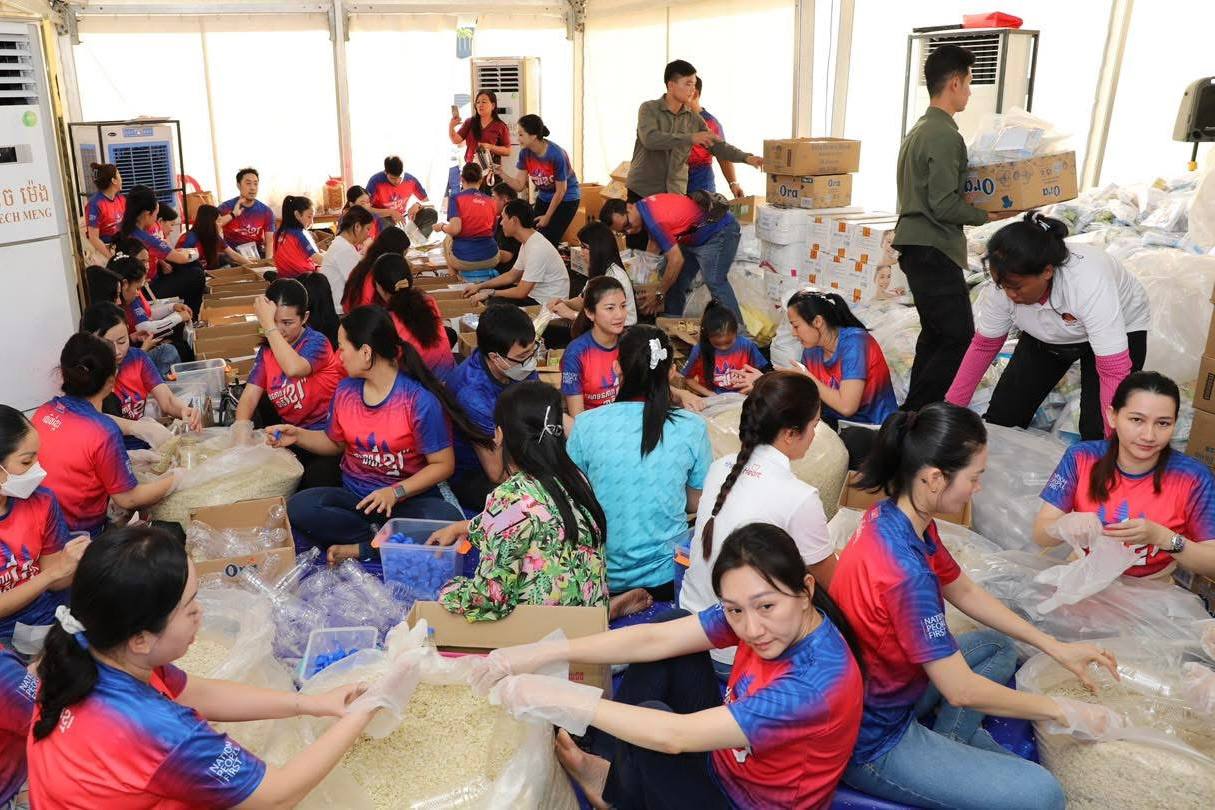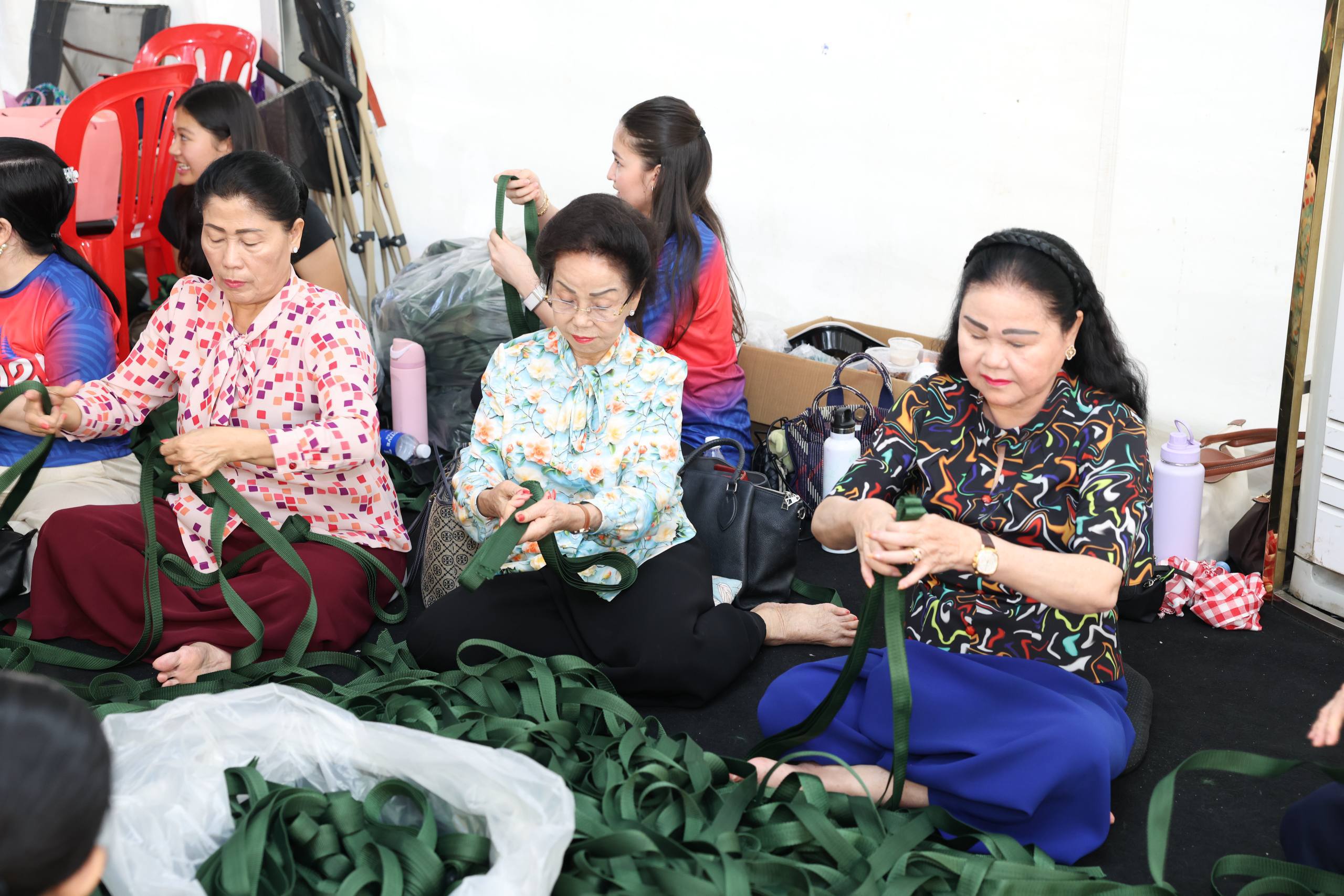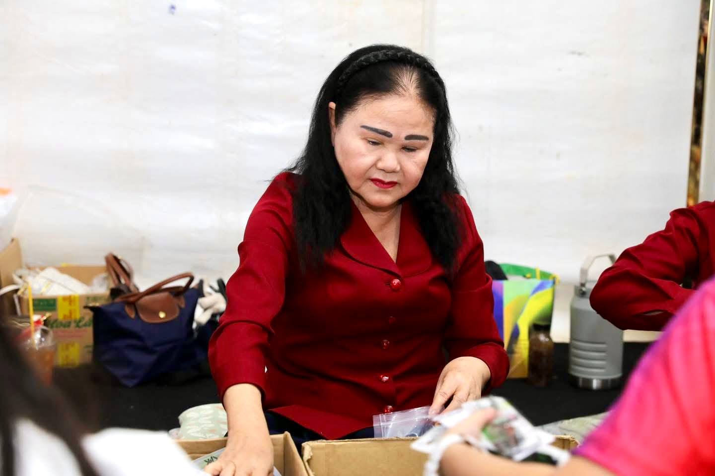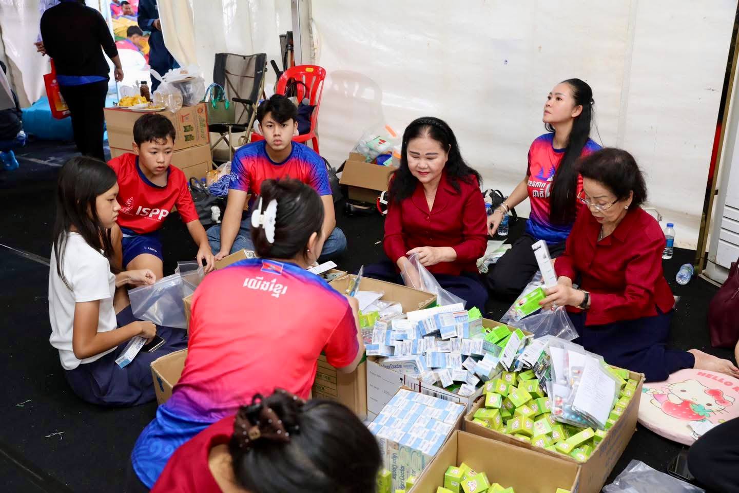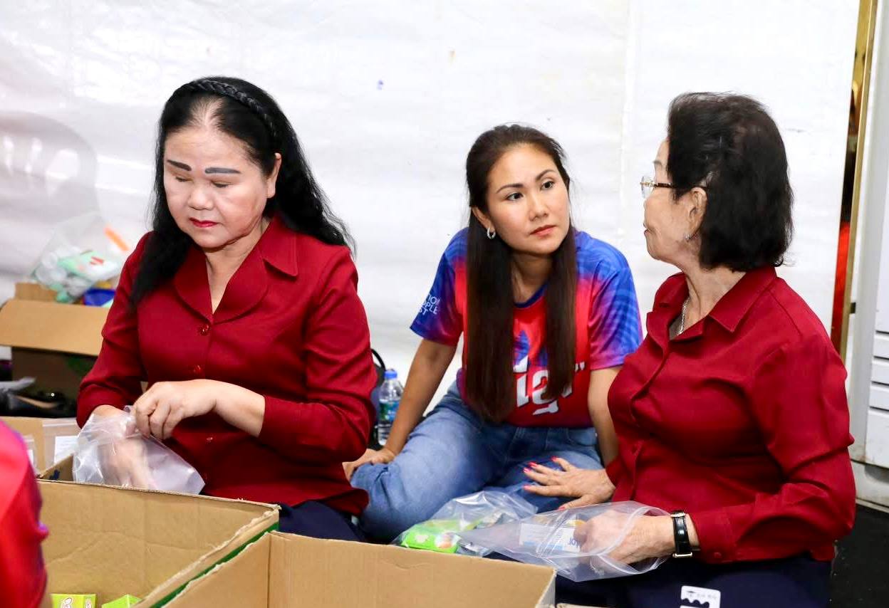 柬单网报道,12月17日下午,柬埔寨红十字会主席文拉妮亲王继续与红十字会志愿者团队一道,深入一线参与救助物资的整理、包装与调配工作,确保食品及各类生活必需品能够及时、有序地送达安置在安全营地内的避难民众手中。