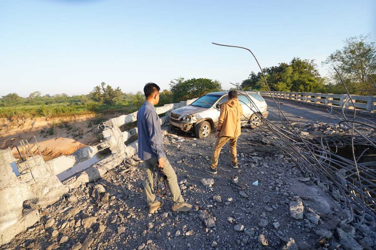 报道称,奥吉克桥是连接暹粒省与奥多棉芷省的重要交通枢纽,承担着两地人员往来与物资运输的关键功能。从现场画面可见,桥面及主体结构受损明显,存在重大安全隐患,已无法继续通行。