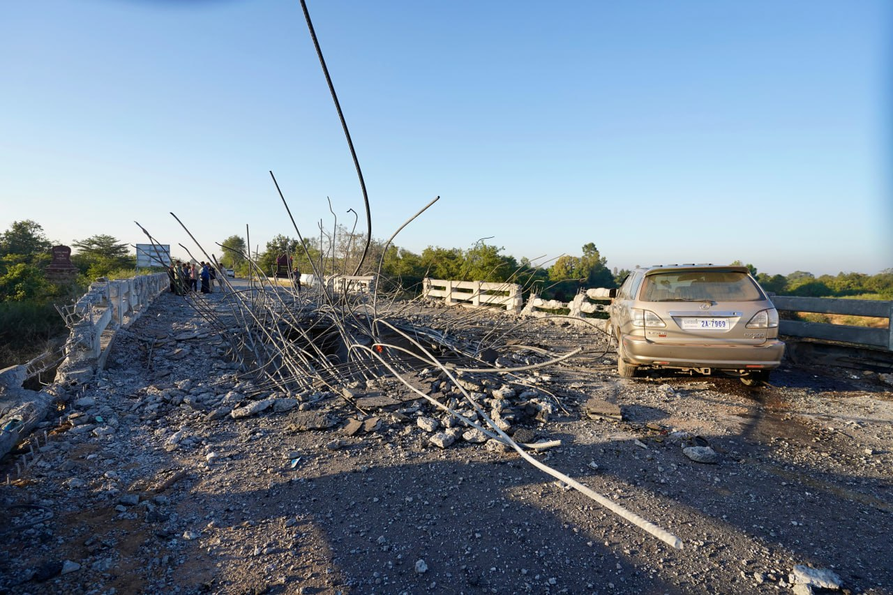 柬单网报道,12月19日晚,暹粒省与奥多棉芷省交界地区发生空袭事件。位于两省交界、68号公路上的奥吉克桥遭泰国军方F-16战机轰炸,桥体结构严重受损,交通被迫全面中断。