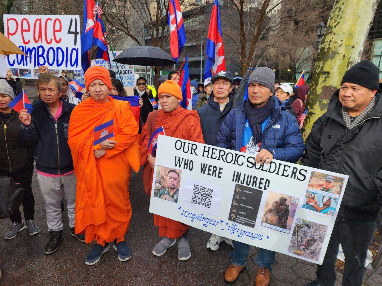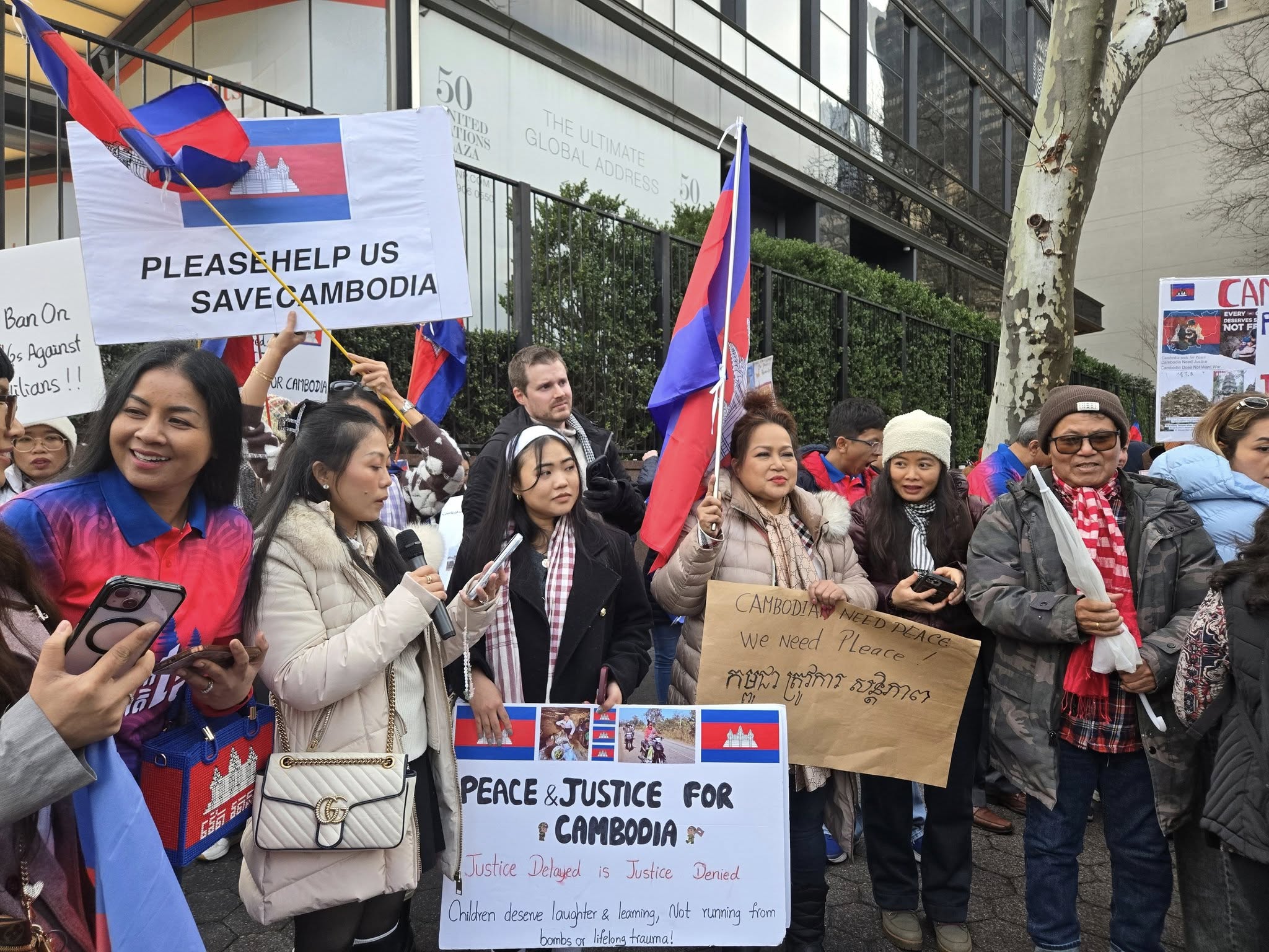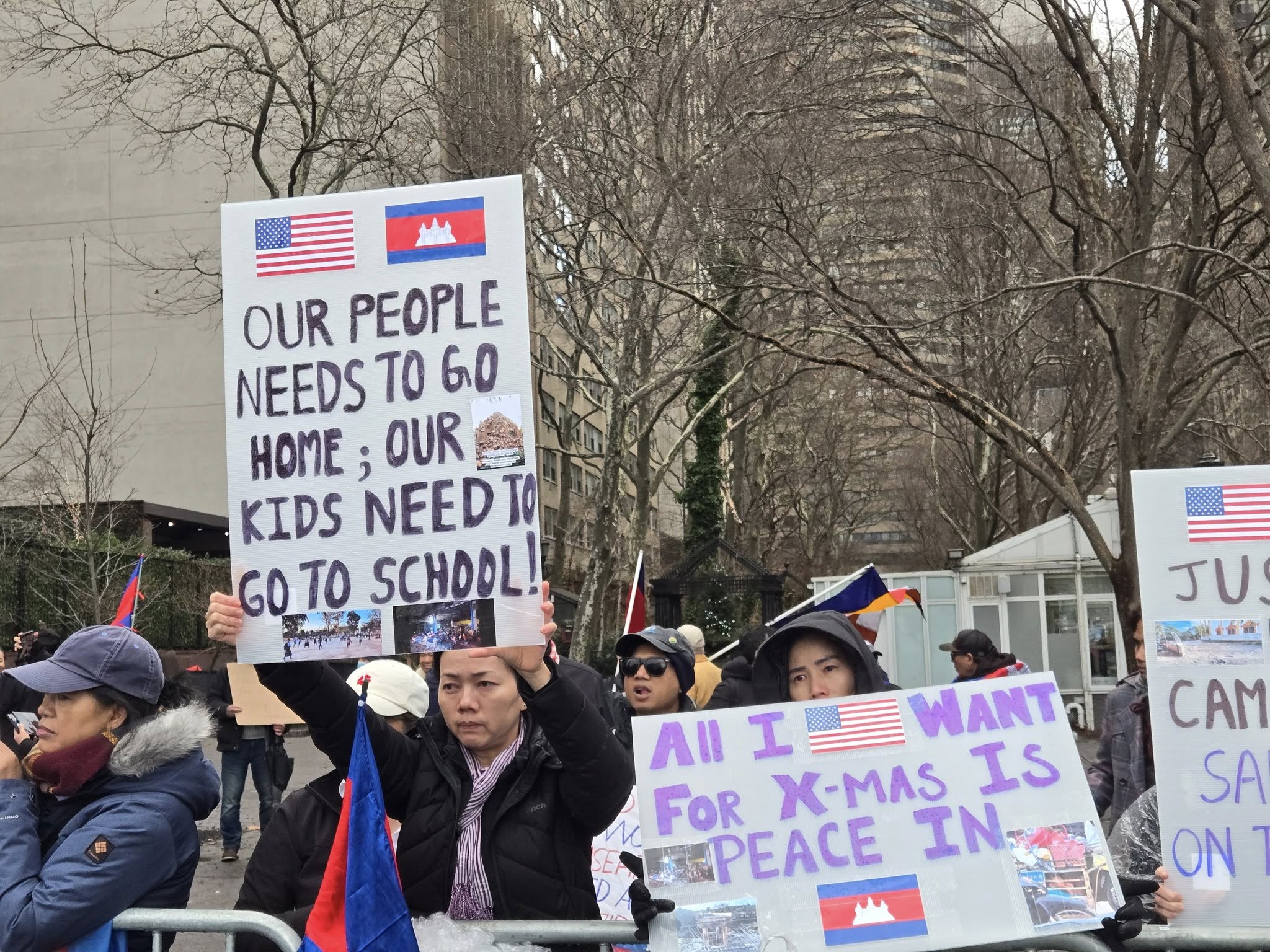 旅美柬埔寨侨民在联合国总部集会,抗议泰军侵犯柬埔寨主权