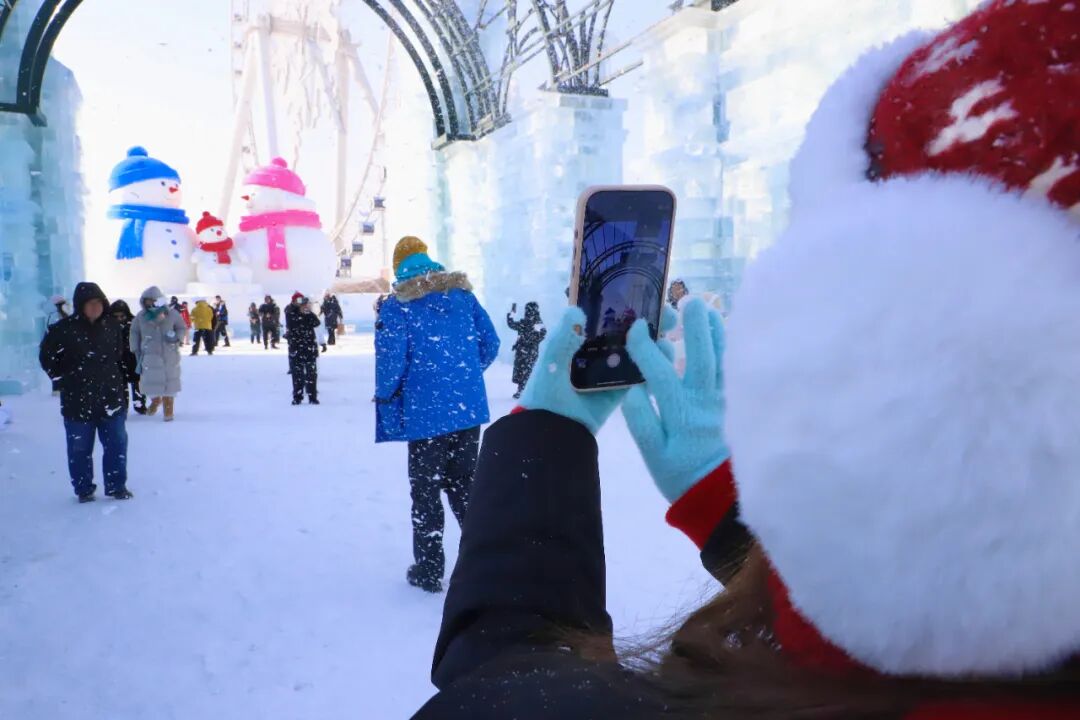12月17日,游客在哈尔滨冰雪大世界游玩拍摄。新华社记者 徐凯鑫 摄