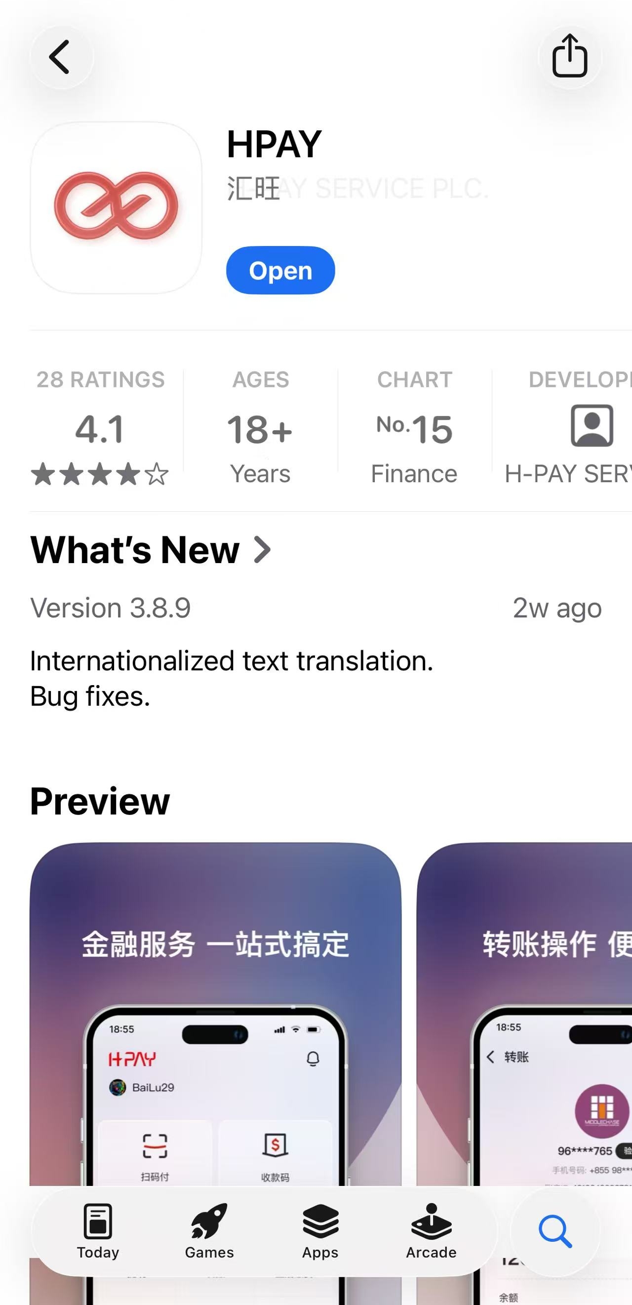 此外,H-Pay应用程序目前可在苹果App Store正常下载并使用。
