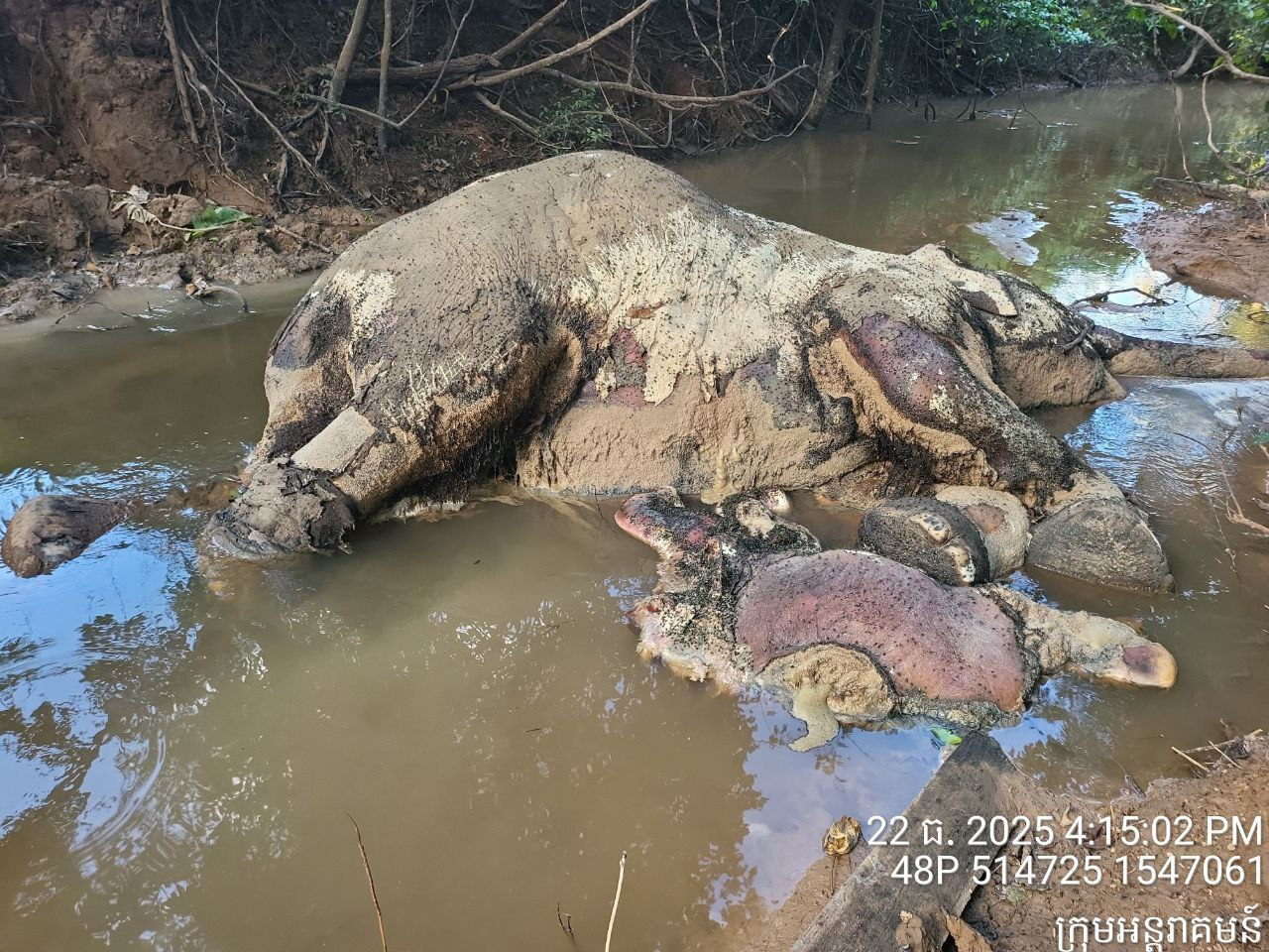 通报指出,调查人员在母象尸体上发现多处疑似爆炸物碎片造成的锐器伤痕,与近期柬泰边境地区发生的军事冲突情况相吻合。相关迹象表明,大象受伤时间可能早于死亡数日。