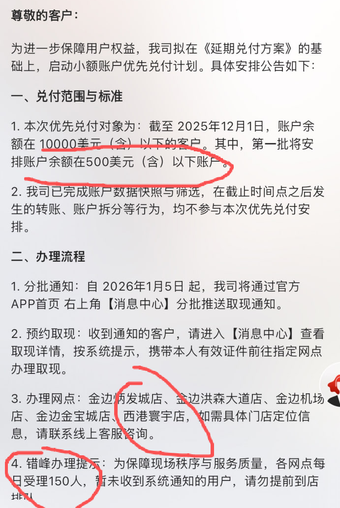 一天一个网点150个人,一共5个网点是750人。除去周末节假日,一个月能兑付1万用户?汇旺还有多少没取出来的用户?1万?2万?还是后面加个0?