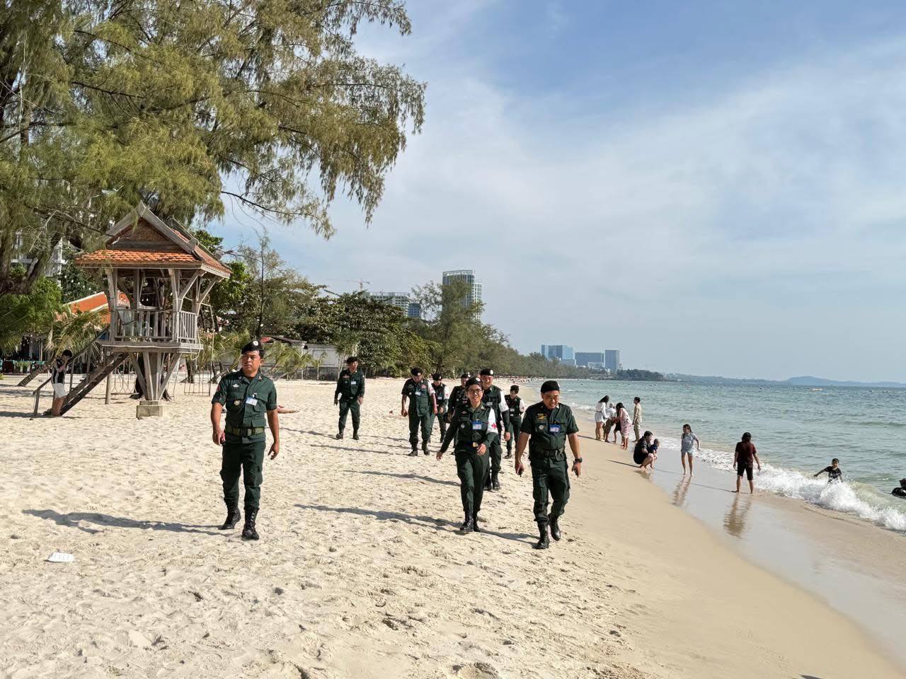 行动当日,省警察局旅游警察办公室、卫生警察力量及特别干预部队联合出动,对沿海沙滩等重点旅游区域实施高密度巡逻防控,全面维护社会治安秩序,切实保障前来西港省休闲度假的本地及国际游客人身和财产安全。