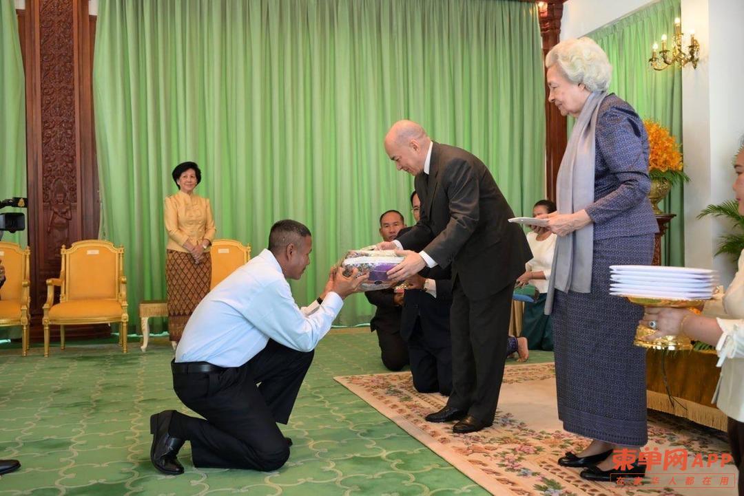 柬单网报道,1月1日上午,柬埔寨国王西哈莫尼与国母莫尼列太后在金边王宫恩准18名英雄士兵入宫觐见,并对他们进行亲切接见。