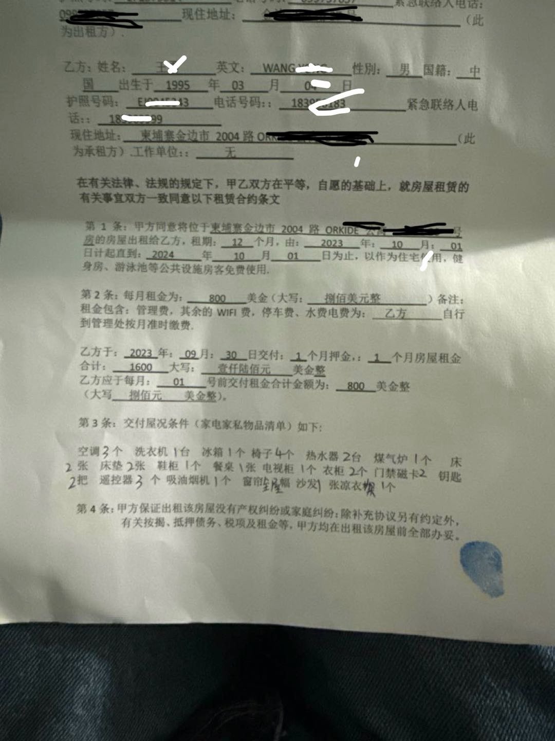 2.核实合同中租户的真实信息,尤其是联系方式和紧急联系人的联系方式。