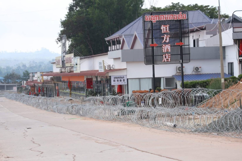 此前,泰国军方于1月16日在柬埔寨菩萨省特莫达地区重新架设铁丝网,包围了当地华人住宅与商铺。该区域此前曾被泰国军队非法占领,近日在当地经营的华人已自行拆除了店前铁丝网。